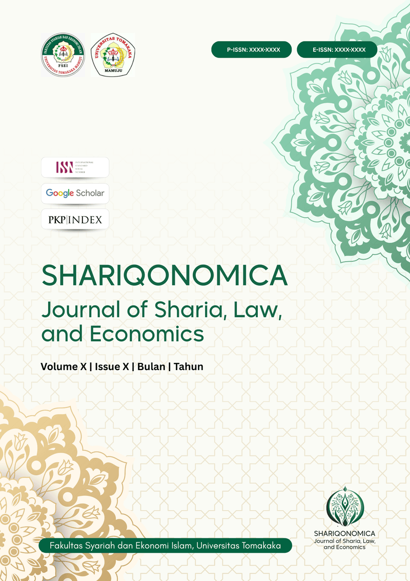 Shariqonomica: Journal of Sharia, Law, and Economics is a peer-reviewed academic journal published by the Faculty of Sharia and Islamic Economics, Universitas Tomakaka. The journal aims to disseminate high-quality scholarly works addressing issues in law, Islamic family law, Islamic economics, and Islamic-based management. Published twice a year in March and September, Shariqonomica accepts original research articles, conceptual papers, and case studies relevant to the integration of Sharia, law, and economics in contemporary society.