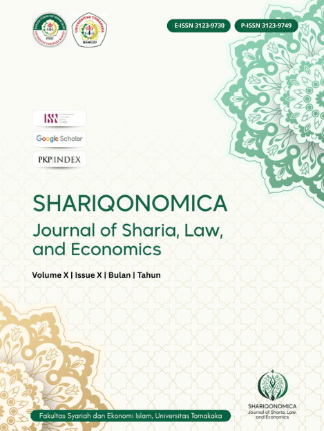 Shariqonomica: Journal of Sharia, Law, and Economics is a peer-reviewed academic journal published by the Faculty of Sharia and Islamic Economics, Universitas Tomakaka. The journal aims to disseminate high-quality scholarly works addressing issues in law, Islamic family law, Islamic economics, and Islamic-based management. Published twice a year in March and September, Shariqonomica accepts original research articles, conceptual papers, and case studies relevant to the integration of Sharia, law, and economics in contemporary society.
